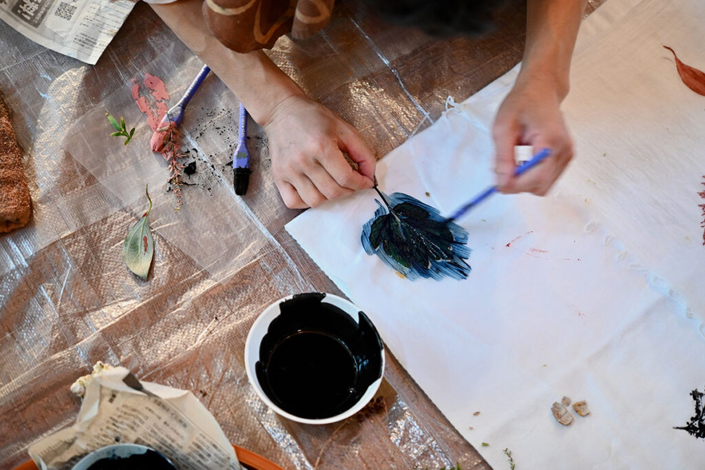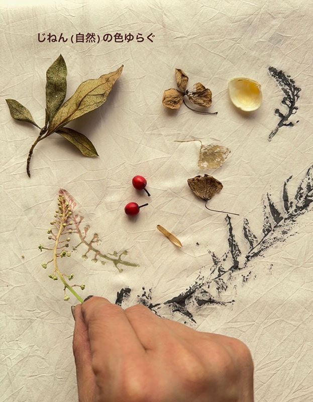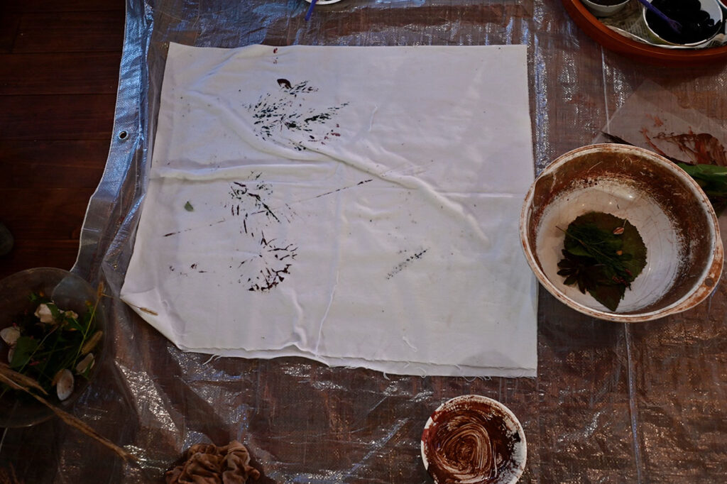 貝殻染めと草花とベンガラプリント